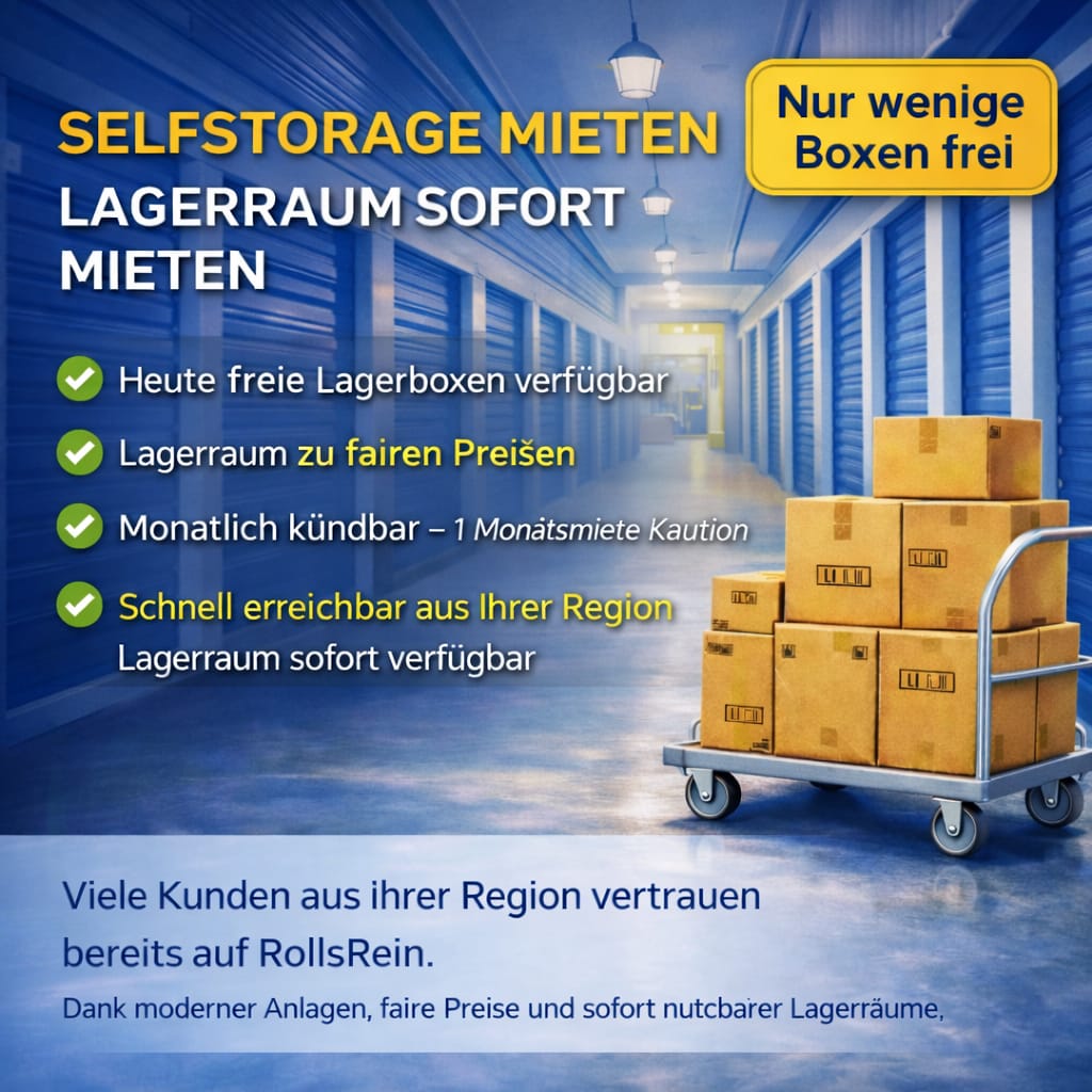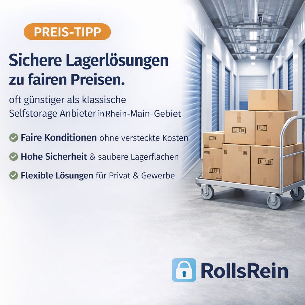 Ob kurzfristige Lagerung beim Umzug, Renovierung oder langfristiges Selfstorage für Ihr Unternehmen: Rollsrein bietet Ihnen individuelle Lagerlösungen in verschiedenen Größen – optimal erreichbar für Kunden aus Ginsheim-Gustavsburg und Umgebung.